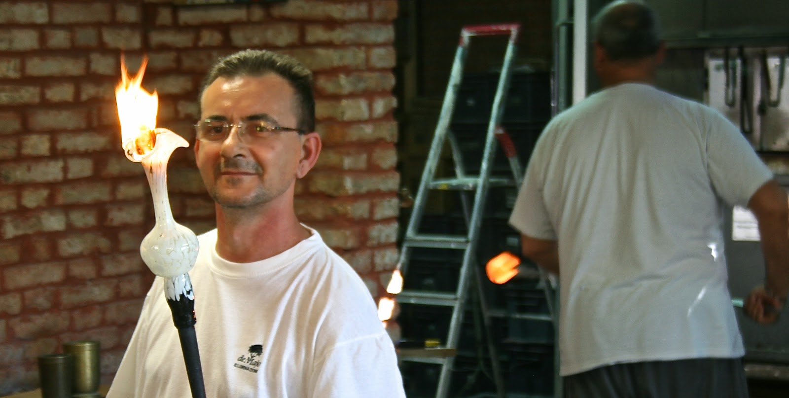 I saw the horse below being made – the latest in the large cavalry of rearing steeds that sit proudly on mantelpieces all over the World. I wasn’t tempted to buy one but I was amazed to watch the glass-blower make it in exactly two minutes.