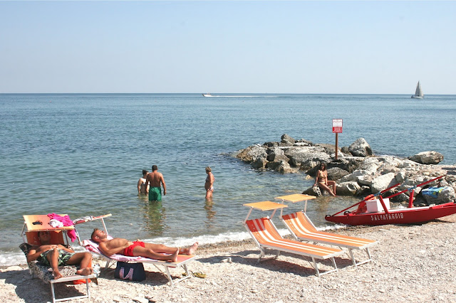 The morbidly nocturnal Marcel Proust was remarkably unlike the two charmingly lively salvataggi (life guards) at Vallugola beach but reading his languorous, long-limbed prose in such a setting, I could imagine Monsieur Proust lying out there on one of those sunbeds conjuring images of moodily timeless Summer days.