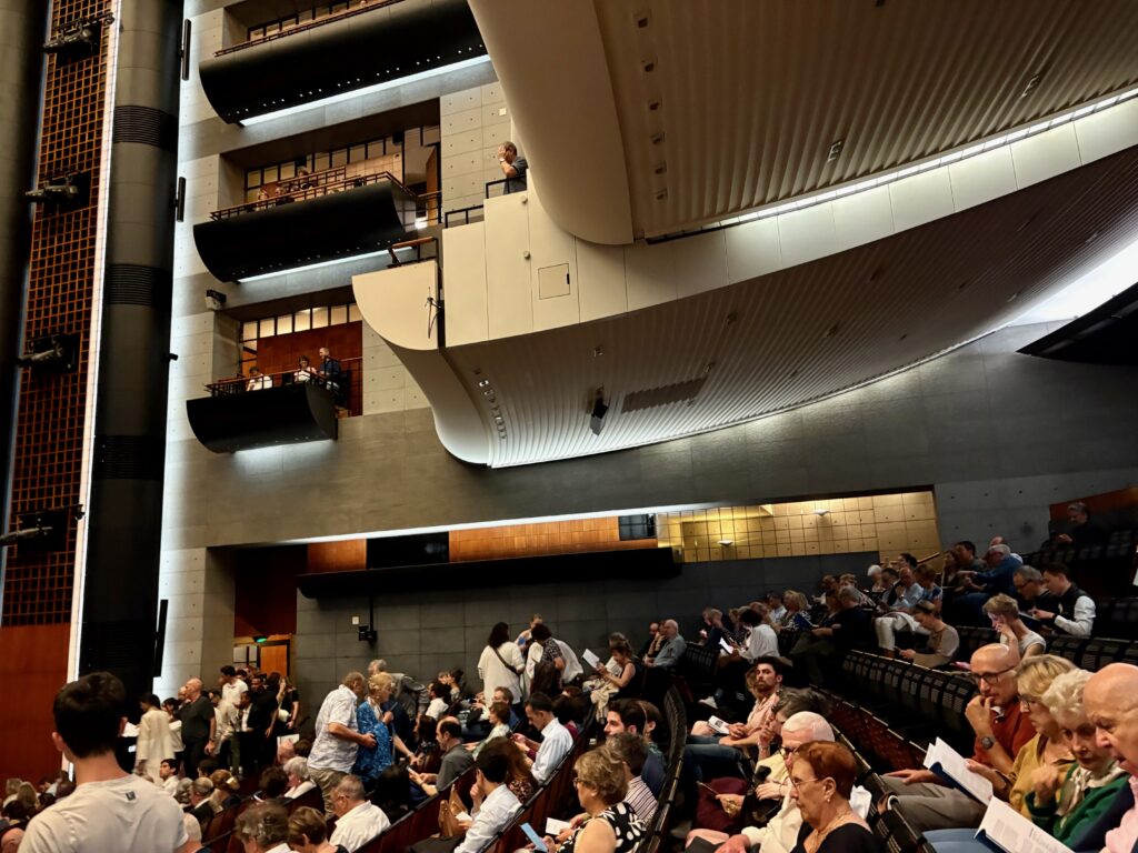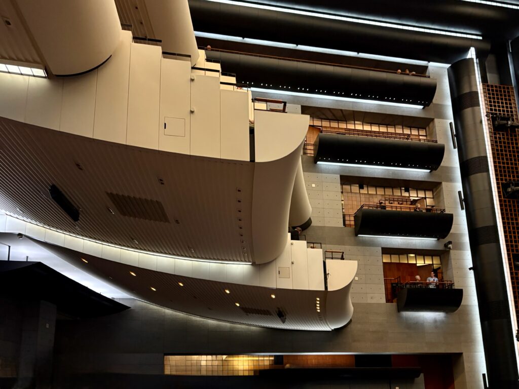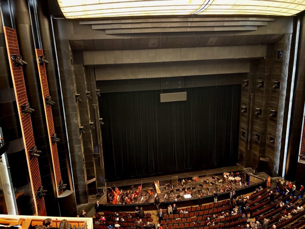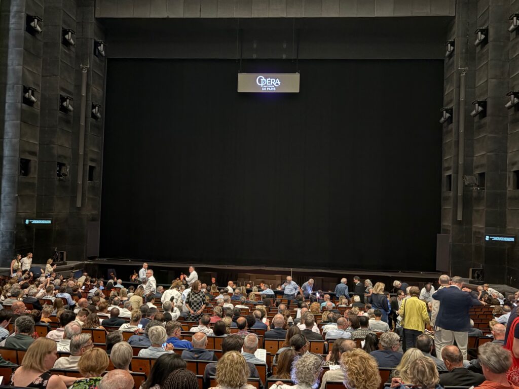 I have been an enthusiast for opera for all of my adult life and even a bit longer as my first opera was as a schoolboy (it was Donizetti’s Anna Bolena at Glyndebourne in the UK). It was a bug that bit me that night and the effect has never worn off. I have visited many opera houses now for decades – not just Glyndebourne, (I live down the road from there), but The Royal Opera House, Covent Garden, English National Opera, Opera North, Buxton Opera, Welsh National Opera, the Metropolitan New York, San Francisco Opera House, La Scala Milan, San Carlo Naples and La Fenice Venice. Every time it has been a special event for the incurable opera fanatic in me. And now, in 2025 and earlier this year, I have added French National Opera at the Bastille – Opéra Bastille. A modern theatre inaugurated in 1989 by President Mitterand and placed at the Bastille, a traditionally working class district of Paris, to deliberately place a cultural palace away from the elite centres of power elsewhere in the city. That sense of democracy and republican idealism is evident in the design, the ambience and philosophy behind what could have been just another pleasure dome for the well-heeled. I noticed the difference straight away when I thought of the Covent Garden Opera House.