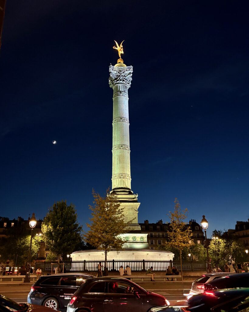 Siituated across the road from the Bastille memorial, the site of the infamous Bastille prison, but also the site of the stroming of the Bastille, where the French revolution began in 1789. When I think of Royal Boxes and Opera Picnics, I think vive La République.