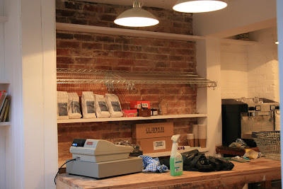 I am intrigued to read that apart from proper coffee, organic cheese, local milk and eggs – I am already swooning here and dribbling Pavlovian saliva all over the computer keyboard – the New Ron-Ron’s is also going to sell, amongst other things, “flintowl bread” (for those who don’t know, it is made with organic flour and low levels of yeast in a long fermentation process), Ben’s “smokey candlings”, chard “from Mark’s allotment”, Jane’s Bonfire Relish and Sara’s mum’s marmalade. Oh yes, they will do stamps, Owen’s Pizzas, whoever Owen is, and Bird’s Custard too. In other words, it is going to be Heaven on Earth so I shall definitely be celebrating at the opening tomorrow at 12 noon. Here is an illicit peep inside sneakily shot the other day whilst preparations were still in full swing. I bet you wish you lived in Lewes.