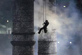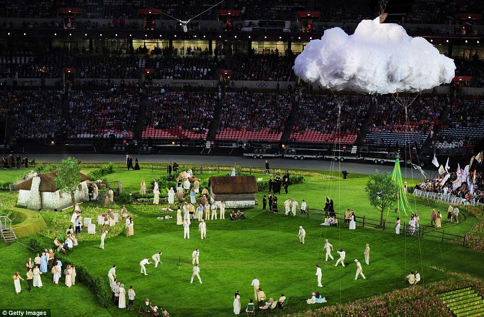 Danny Boyle played games with many of the images of British heretage too, from may-pole dancing milk maids and cricket on the village green, thatched cottages and William Blake’s nightmare vision of dark satanic mills.