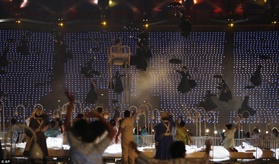 Brilliantly too was the homage paid to the other great British institutions and organizations, the Suffragette movement, the Jarrow Marchers, the Campaign For Nuclear Disarmament, CND and the National Health Service, with hundred of dancing nurses and children patients imaginatively mixed with character from well-known British children’s stories.