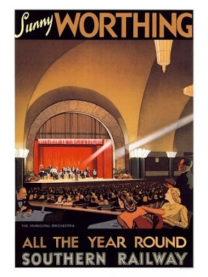 I went to lunch in the small Sussex seaside town of Worthing at the weekend – vegetable soup, haddock and trifle with a rather good Chilean white wine, if you must know. It is always a pleasure to see the town’s underestimated array of lovely art deco buildings – especially the pier with its curves and contours still beautifully preserved from the time when a very damaged 19th. Century pier was replaced in the 1920s and 30s.